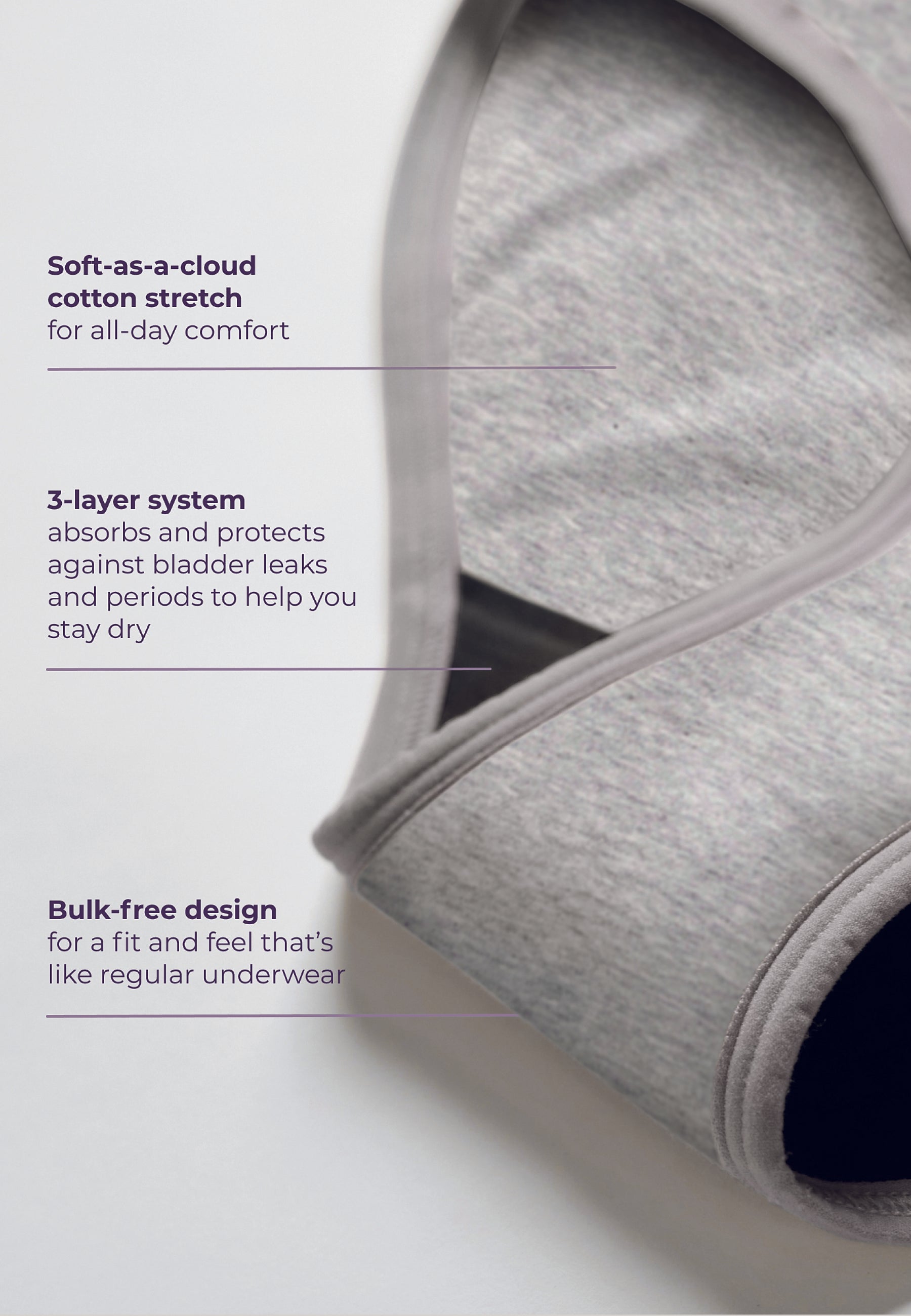 Ultra-thin 3-layer system absorbs and provides period protection, with waterproof threads for added side-leak protection.